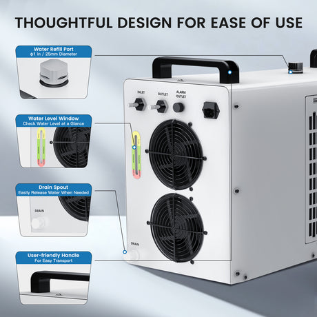 Monport 6L CW-5200 Industrial Water Chiller for 40W-150W CO2 Laser Engraver