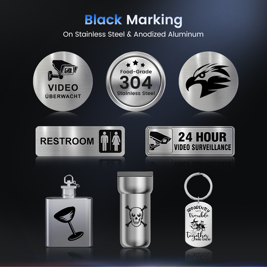 Unlock high-end engraving capabilities with processes like black marking on aluminum, creating durable, high-contrast designs that last. Ideal for premium finishes and professional-grade projects, offering precision and quality on a variety of materials.