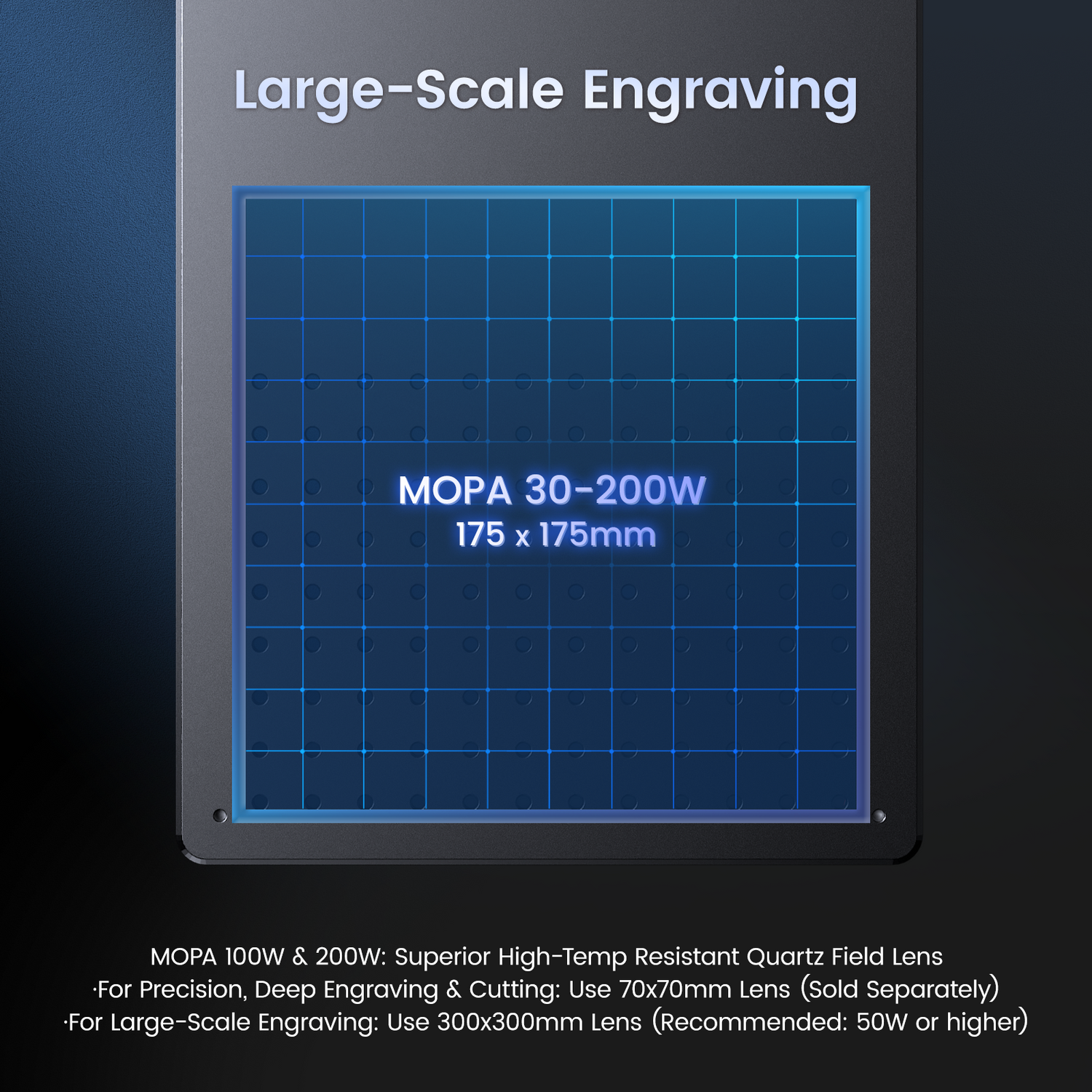 Field Lens Engraving Area: 6.9 x 6.9 in.(175x175mm)Quartz Field Lens