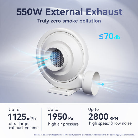 Specifically, in order to truly solve the smoke problem caused by processing, Monport has upgraded the exhaust system of the entire series of products. We used a 550W high-speed fan with a maximum airflow of 1125m ³/h≈660cfm(more than triple the exhaust volume of other brands), while maintaining excellent noise performance.