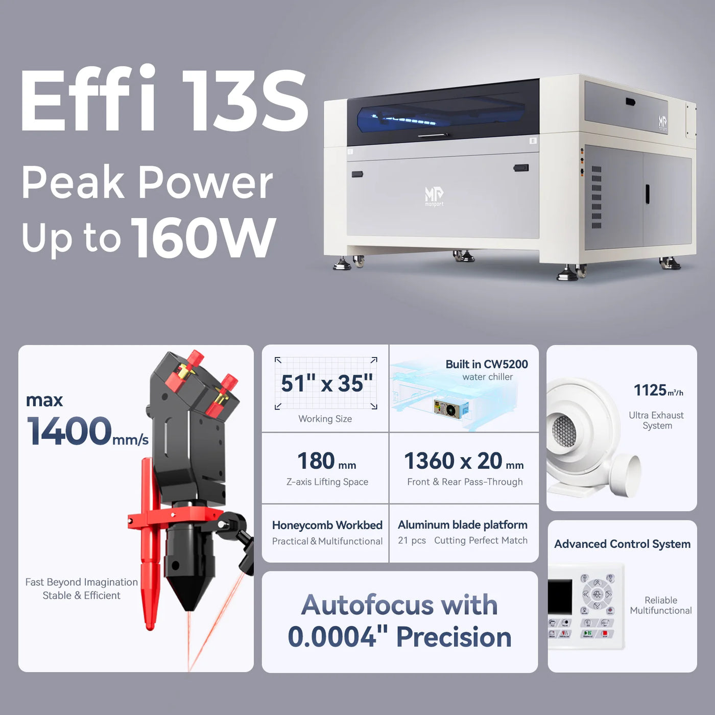 Monport Effi 13S Upgraded 130W CO2 Laser Engraver and Cutter with Autofocus and Built-in Water Cooling