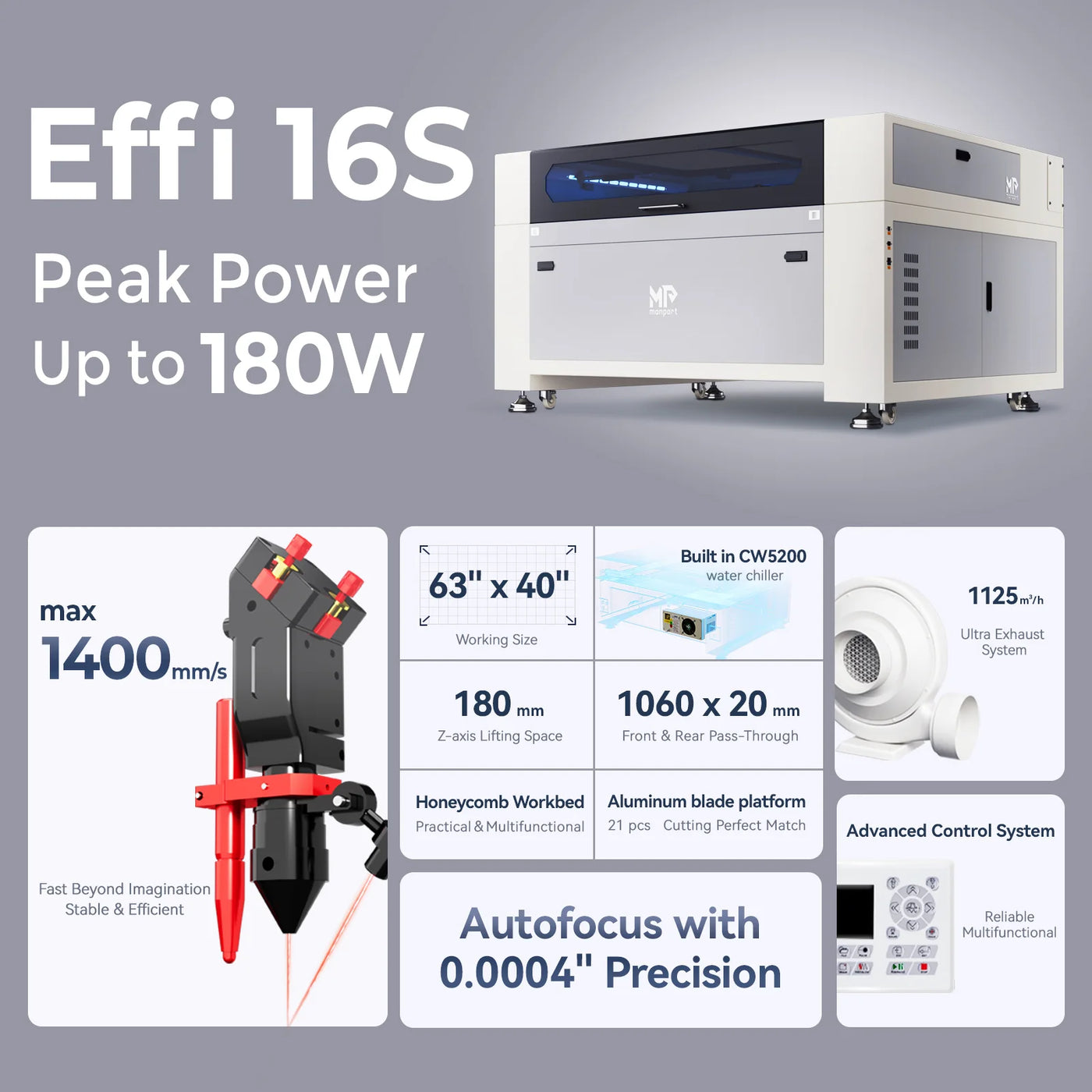 Monport Effi 16S Upgraded 150W CO2 Laser Engraver and Cutter with Autofocus and Built-in Water Cooling