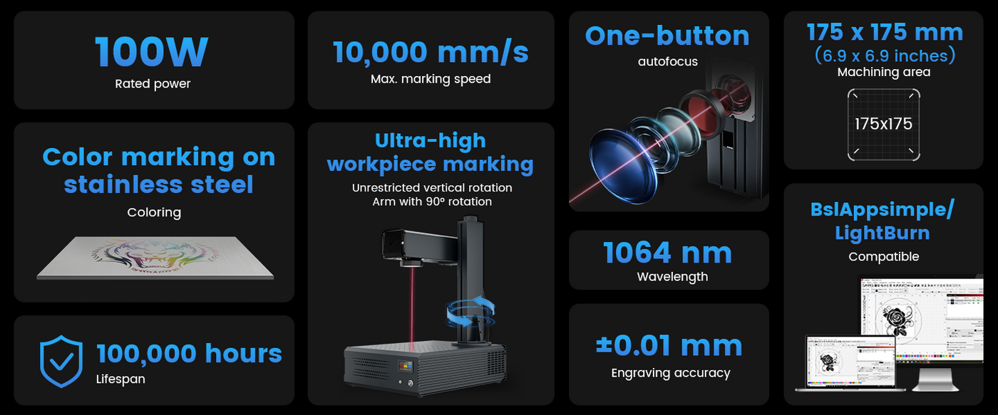 Monport GA 100W Upgraded Integrated MOPA Fiber Laser Engraver & Marking Machine with Auto Focus