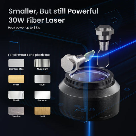 With this 30W fiber laser marking machine, you can perform 2.5D metal engraving, deep metal engraving, and even some metal sheet cutting (usually the higher the power, the stronger the deep engraving and cutting ability, and the higher the efficiency. If you want stronger and faster results, Monport recommends purchasing a 50W or above machine)