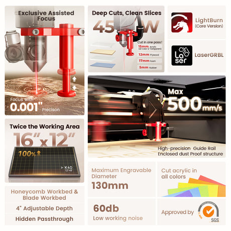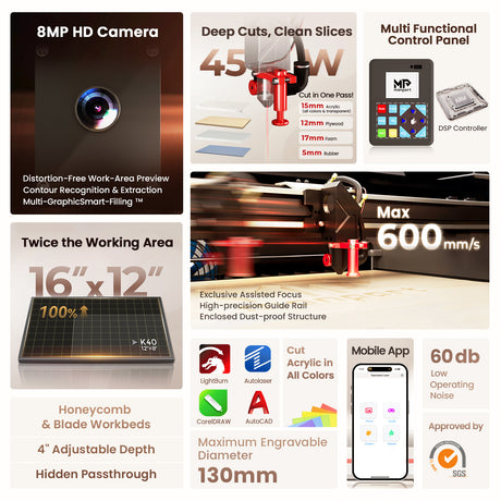 Its custom motors, precise linear rails, and lightweight components enable engraving speeds up to 500mm/s for smooth, accurate results.