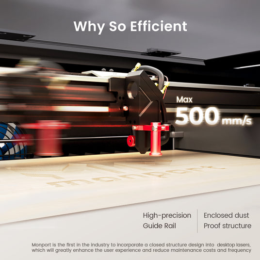 Why can the Reno45 achieve a processing speed of 500mm/s, comparable to top products in the industry? Because Monport has independently designed a brand new mechanism, including lightweight design, high-precision slides and customized motors. This is what makes the Reno45 so efficient.