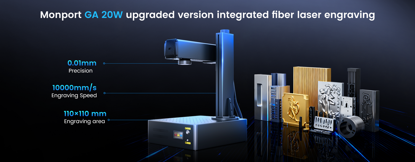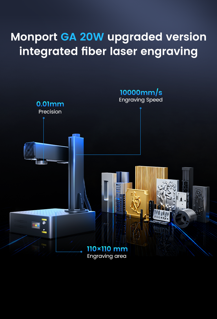 Monport GA 20W Integrated Fiber Laser Engraver & Marking Machines with Auto Focus