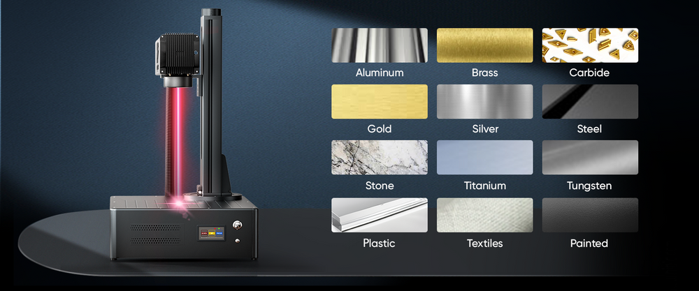 Materials Suitable for Engraving: Brass, Hard Plastic, Titanium, Brick, Marble, Gold, Carbide, Silver, Tungsten, Granite, Steel, etc.